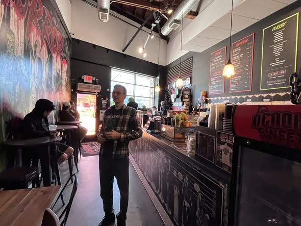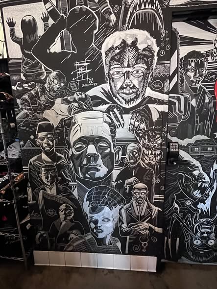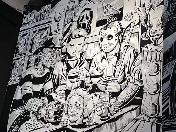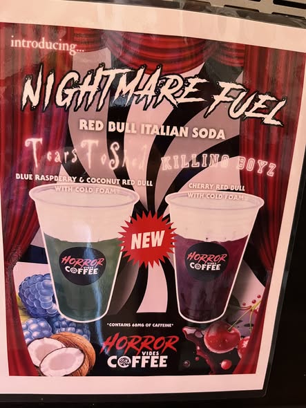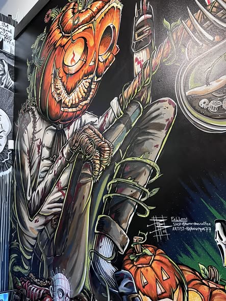 Of course we stopped at Horror Vibes Coffee- no we did not partake of the nightmare fuel, but the wall art definitely had the right… vibe.