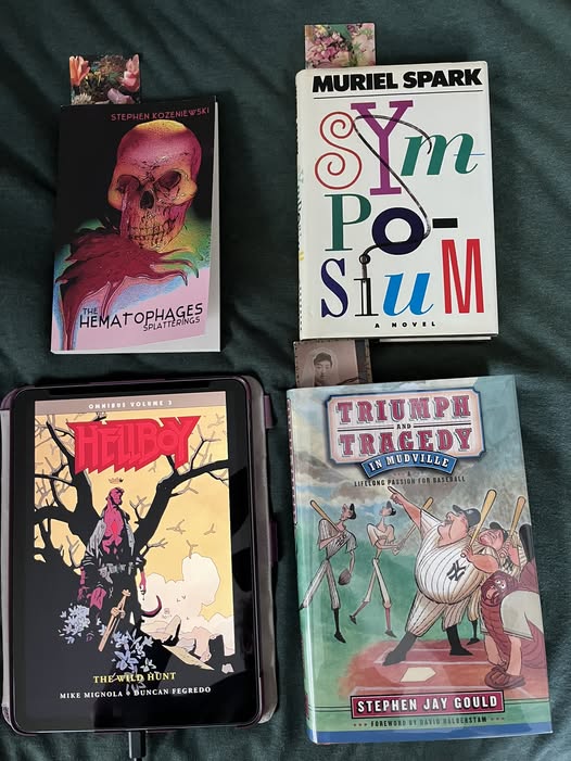 On a day of emotional whiplash which I’ll blame on Kimya Dawson, Bob Dylan, How to Get to Heaven from Belfast, and Stonewall Kitchen (in no particular order), these are my current reads from Muriel Spark, Mignola/Fegredo, Stephen Kozeniewski – Author, and Stephen Jay Gould (this year’s spring training baseball book). Hopefully, a couple will be reviewed for Uncomfortably Dark Disciples this month.